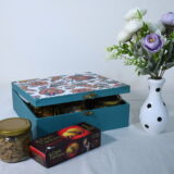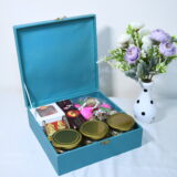 The Blue MDF Box Hamper combines dry fruits, festive candles, lotus latkan, murti, and chocolates in a premium blue box. Perfect for gifting during festivals, special occasions, or corporate events.