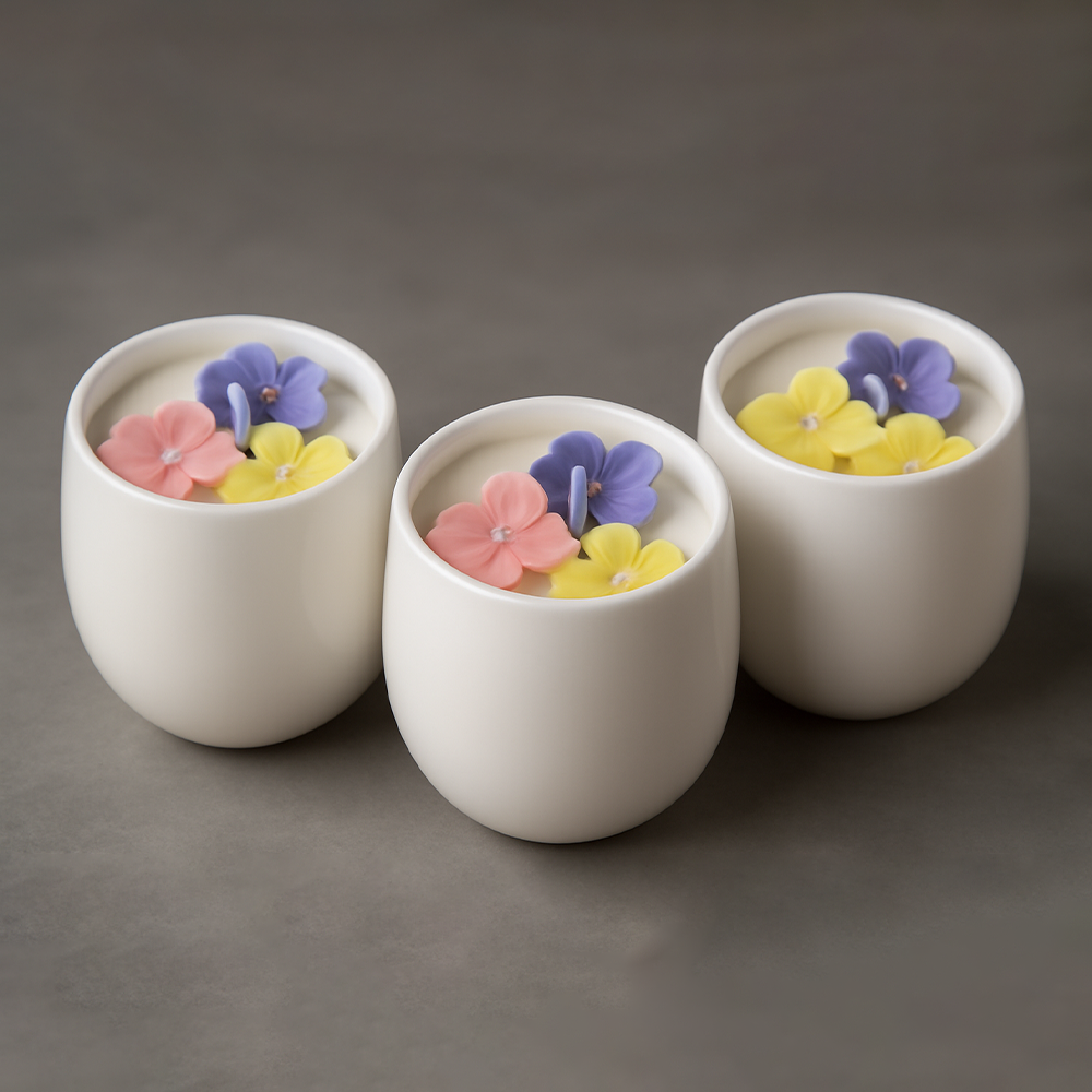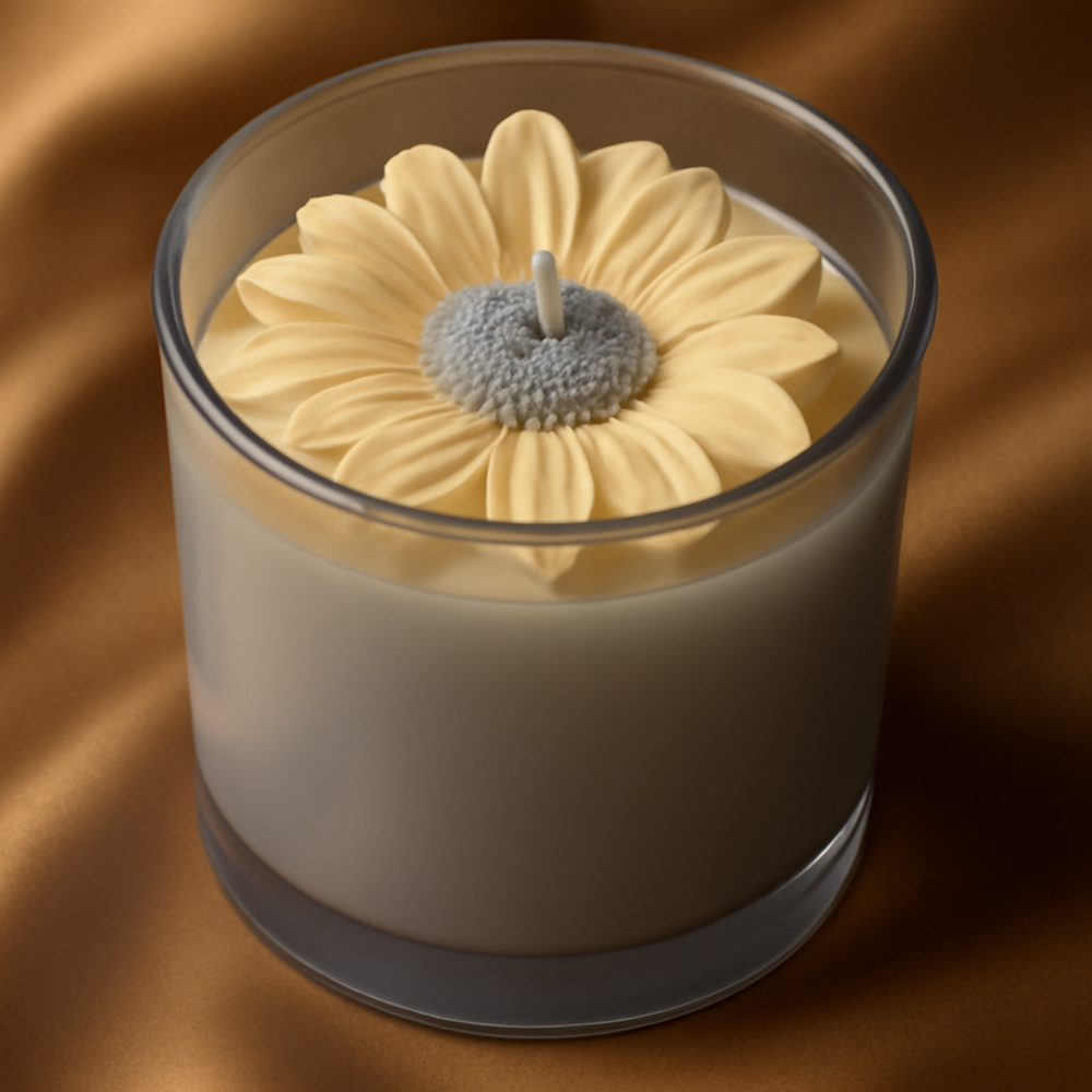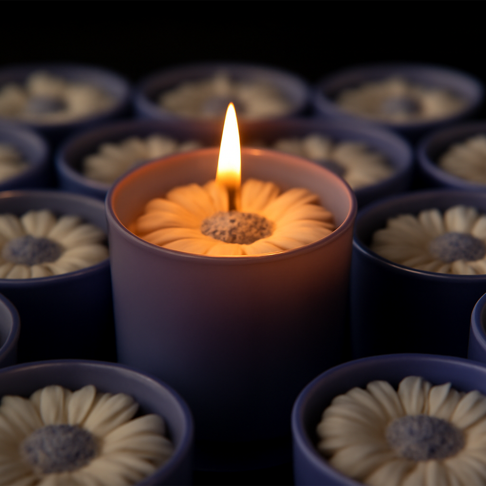 Scented Blue Jar candle with top daisy flower design – Ievender fragrance