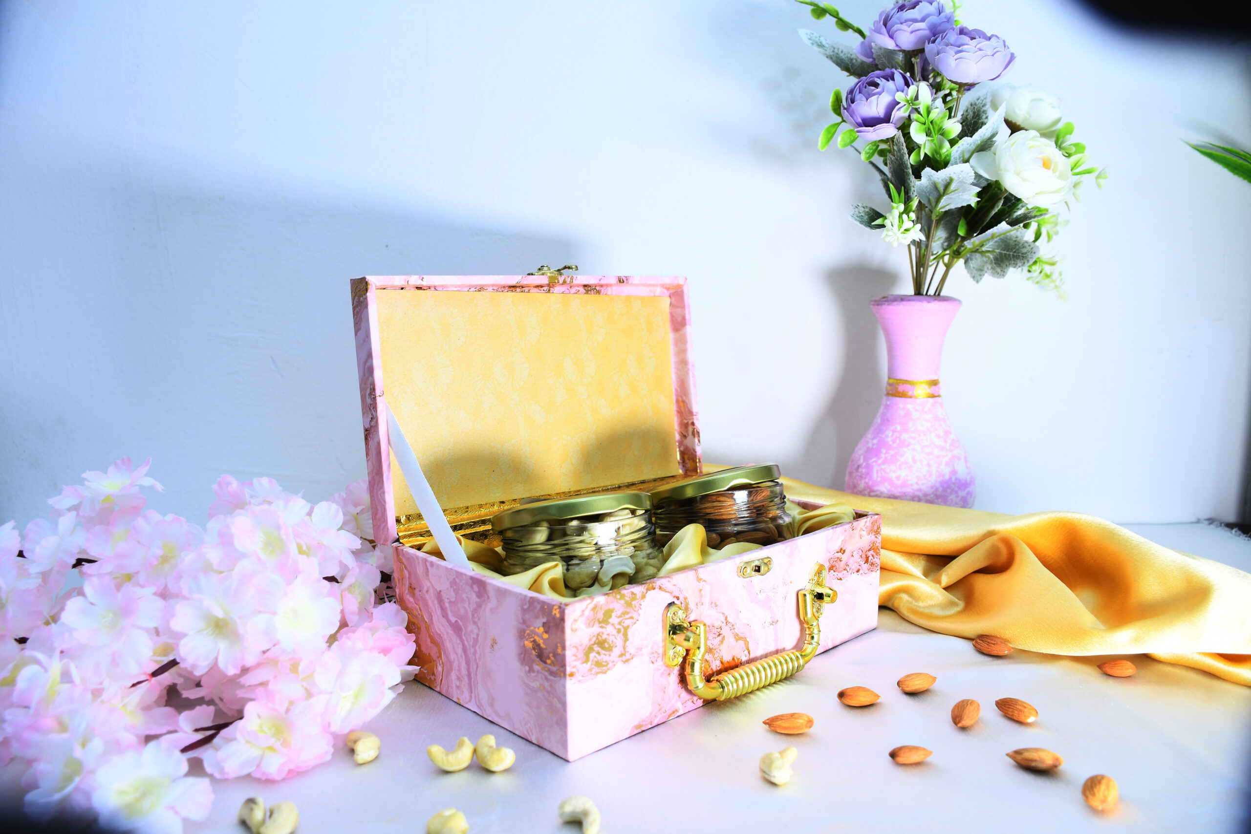 Upgrade season’s gifting with the Modern Pink MDF Dry Fruit Hamper – HP2: