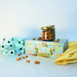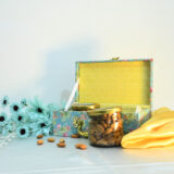 This hamper comes with a beautifully designed MDF box showcasing vibrant floral prints. Inside, you’ll find two airtight jars (200g each),